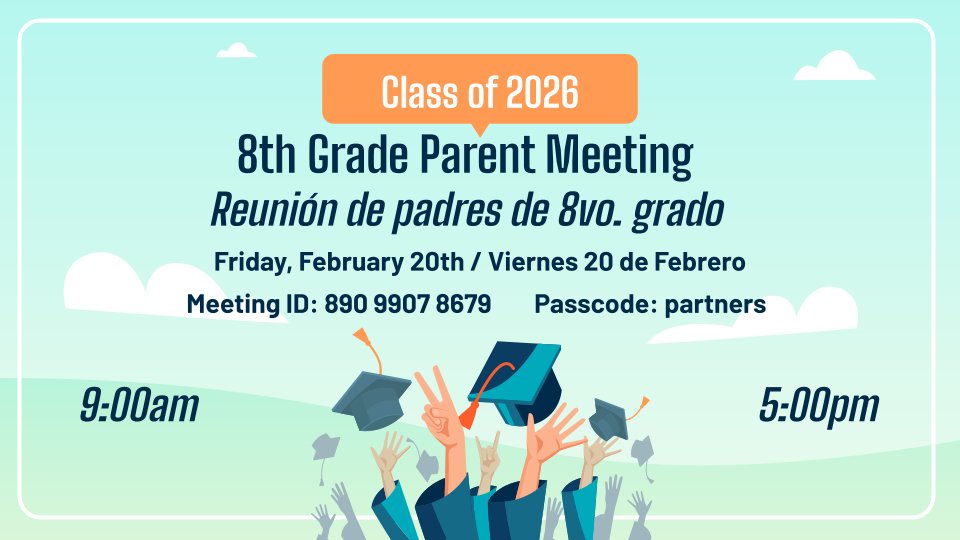 8th Grade Parent Meeting Join the principal in person or on Zoom to learn about promotion expectations. Únase al director en persona o por Zoom para conocer las expectativas de promoción.https://inglewoodusd.zoom.us/j/89099078679?pwd=KzfaSwwA2UI8ln7fcdvGWjfEjZOX8l.1